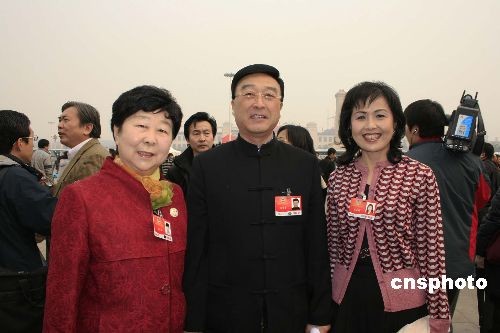 政协委员冯辛耕出席大会,与其他委员在人民大会堂前合影。中新社发 金立冬 摄
