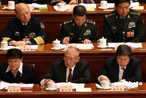 3月5日上午,十一届全国人大二次会议在北京人民大会堂开幕。全国政协副主席、前香港特首董建华(下排中)列席。中新社发 杜洋 摄