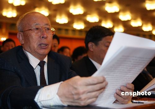 3月5日上午,十一届全国人大二次会议在北京人民大会堂开幕。七十岁高龄的辽宁省全国人大代表肖作福认真听取国务院总理温家宝作《政府工作报告》。中新社发 任晨鸣 摄