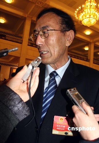 3月5日上午,十一届全国人大二次会议在北京人民大会堂开幕。图为西藏自治区主席向巴平措接受记者采访。中新社发 金立冬 摄
