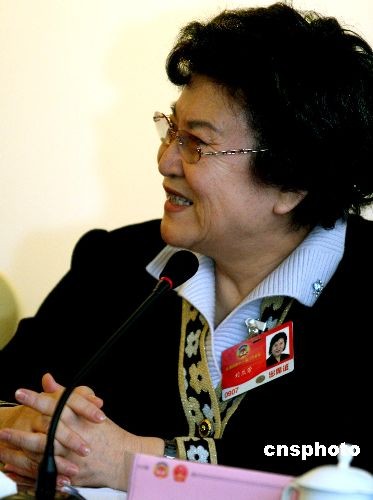 中国全国政协委员、中国曲艺家协会副主席刘兰芳,3月6日主持全国政协文艺界小组会。中新社发 宋吉河 摄
