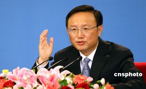 3月7日,十一届全国人大二次会议举行新闻发布会,外交部部长杨洁篪表示,中方愿同美国等国一起在国际金融危机的惊涛骇浪中同舟共济,携手共进。中新社发 杜洋 摄