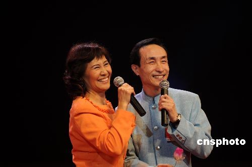 全国政协委员、著名小品演员巩汉林夫妇表演小品。中新社发 宋健浩 摄