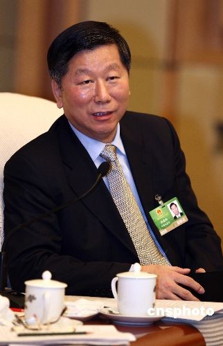 3月7日,全国人大上海代表团在人民大会堂举行全团会议。中国证监会主席尚福林出席会议,并就证券金融等问题回答记者提问。中新社发 杜洋 摄