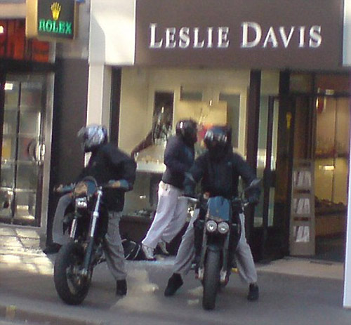 中新网3月8日电 据英国媒体报道,6日,一群摩托党在伦敦最繁华的大街上抢劫了一家珠宝店。这已经是该团伙第二次做案。实施抢劫的有4人,都戴着头盔以隐藏面部,目击者表示他们看上去不过是学生年纪。抢劫时,其中两人冲进店里,用大锤砸碎橱窗玻璃,拿走里面的手表和珠宝;另外两人则一直开着引擎,等前者跳上车后即迅速离开。