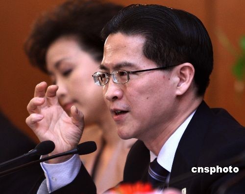 3月8日,全国政协十一届二次会议记者会在人民大会堂新闻发布厅举行,主题是“政协委员谈上海世博会”。万季飞、周汉民、成岳冲、杨澜等四位委员出席并回答记者提问。周汉民回答记者提问时肯定地说,本届世博会一定会极大地促进我们海峡两岸的经贸和文化往来。中新社发 宋吉河 摄