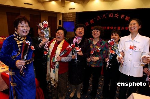 3月8日晚,参加全国政协十一届二次会议的妇联界女委员们在驻地宾馆共度妇女节。中新社发 傅丹丹 摄