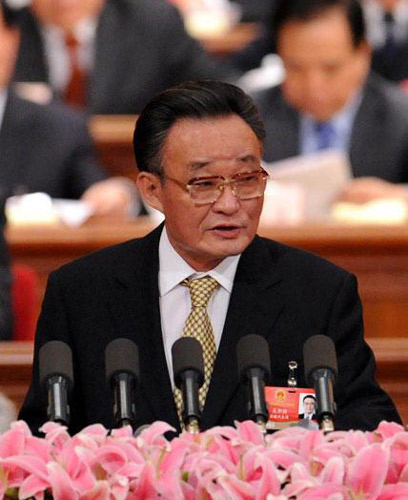 3月9日,十一届全国人大二次会议九日举行第二次全体会议,中国全国人大常委会委员长吴邦国向大会作全国人大常委会工作报告。