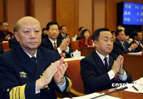 3月9日上午,十一届全国人大二次会议在北京人民大会堂举行第二次主席团会议,主席团成员、解放军海军司令员吴胜利上将出席。中新社发 任晨鸣 摄