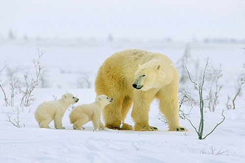 据英国媒体3月9日报道,野生动物摄影师安迪-鲁斯捕捉到了一组北极熊幼仔在春季到来后,首次离开洞穴学习走路的温馨照片,两只只有八周大的北极熊幼仔在春日的照耀下首次离开洞穴,它们在出生后首次面对寒冷的北极风和食肉动物的威胁,它们的母亲则在一边对它们进行保护。