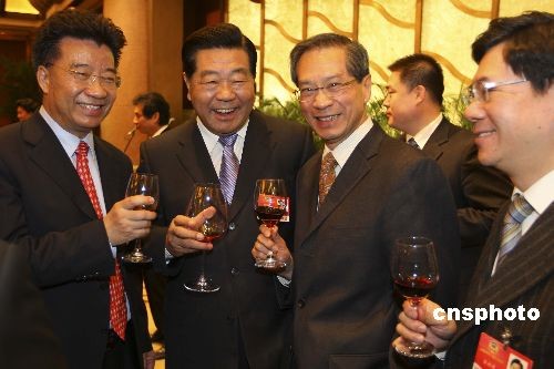 全国政协主席贾庆林出席招待会并向委员敬酒。中新社发 盛佳鹏 摄