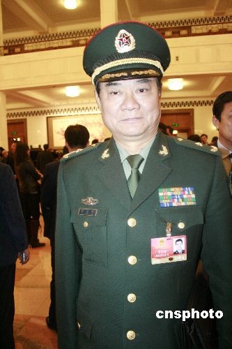 3月10日下午,人大代表、福建省军区政委李光金在人民大会堂。中新社发 金立冬 摄