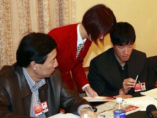 2009年3月11日,全国政协委员刘翔在京出席全国政协会议分组讨论。图为刘翔出席政协会议分组讨论。中新社发 吴思强 摄