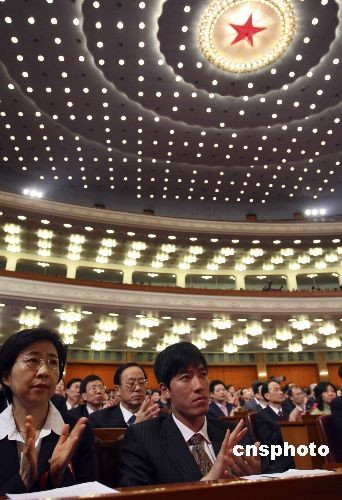3月12日,全国政协十一届二次会议在北京人民大会堂闭幕。全国政协委员刘翔出席闭幕大会。中新社发 盛佳鹏 摄