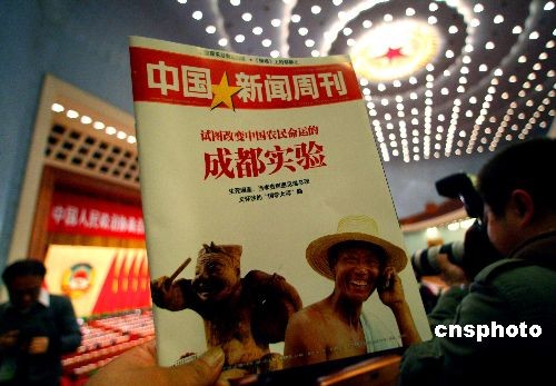 3月3日至13日,全国“两会”在北京人民大会堂召开,与会人员在会前关注《中国新闻周刊》。中新社发 宋吉河 摄