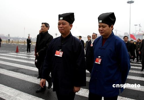 3月12日,全国政协十一届二次会议举行闭幕大会,宗教界委员步入会场。中新社发 傅丹丹 摄