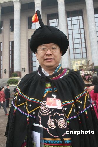 3月12日上午,全国政协十一届二次会议闭幕。图为彝族的全国政协委员安南出席闭幕会。中新社发 金立冬 摄