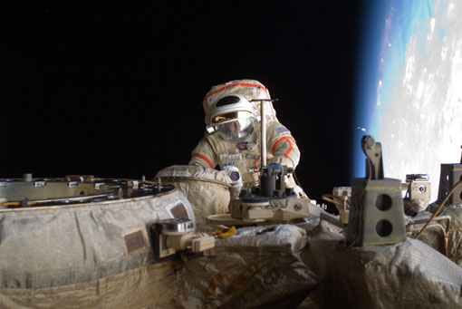 美国航空航天局12日收到国际空间站宇航员10日进行太空行走时自拍的照片,参加太空行走的是空间站俄罗斯宇航员尤里·隆恰科夫和美国宇航员迈克·芬克,原计划出舱5小时45分,但他们提前完成作业,太空行走共持续4小时49分。