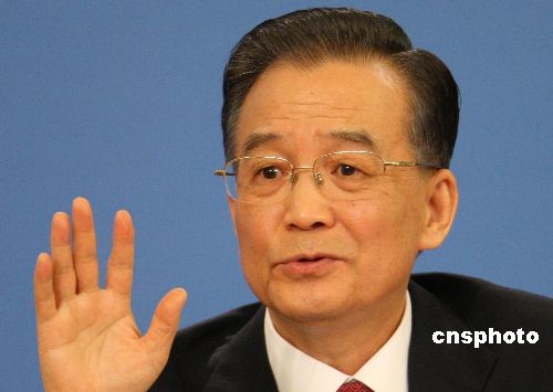 3月13日上午,中国国务院总理温家宝在北京人民大会堂举行的新闻发布会上回答香港记者提问时表示,中央十分关注港澳地区在这场金融危机中所遇到的困难,中央有五方面措施支持港澳地区应对金融危机。中新社发 任晨鸣 摄