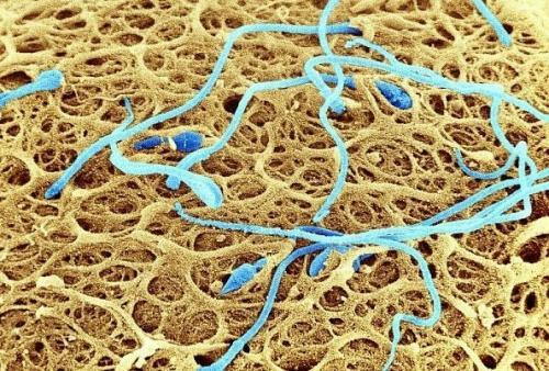 卵子表面的精子:生命循环从此开始:这张图片上显示的是大量精子正在争先恐后地给卵子受精。