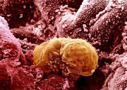 培育6天后的人类胚胎被植入子宫:生命循环从此开始:6天的人类胚胎开始被植入子宫内膜——子宫的内表面。