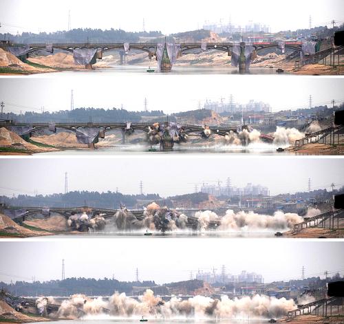 3月17日,横跨长沙市涝刀河上的长湘公路廖家渡大桥成功爆破拆除。长湘公路廖家渡大桥长194米,桥面宽9米,为钢筋混凝土四跨双曲拱桥,跨径40余米,始建于20世纪70年代初。2008年11月,廖家渡大桥出现桥墩间拱肋断裂现象,为防止意外事故出现,长沙市对该桥实行封闭,并决定拆除重建。这次爆破采用分段微差起爆方式,从南向北分9段依次起爆,用时3秒。