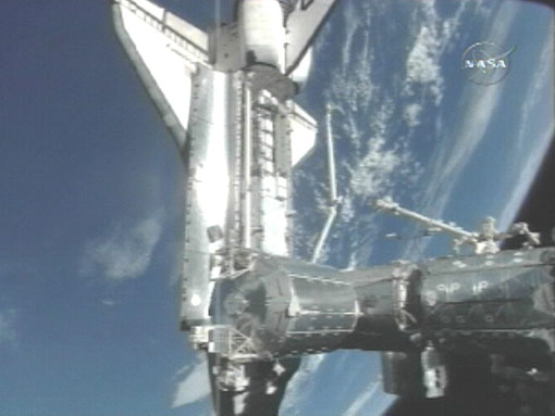 北京时间18日5时19分,美国“发现”号航天飞机安全飞抵国际空间站,并与之对接。