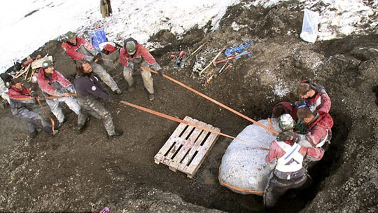挪威古生物学者许鲁姆率领的考察队,在挪威斯瓦尔巴群岛发掘一具生存于距今1.5亿年前侏罗纪时期的一只长达15米的古老爬行动物的化石。