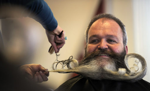 德男子将胡子编成自行车迎世界胡子节(3)——中新网