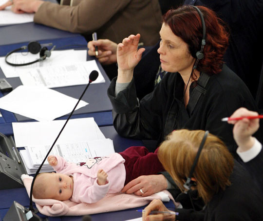 3月26日,丹麦议员汉娜·达尔在法国斯特拉斯堡参加欧洲议会会议,她的小宝宝也随着她一起“出席”。