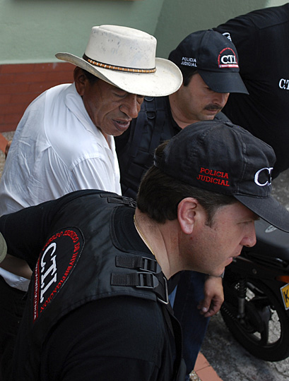 亚塞比欧·阿华雷兹(戴白帽者)被警方送往看守所羁押。
