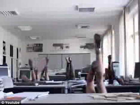 组图:俄罗斯女郎办公室表演花游秀长腿(2)
