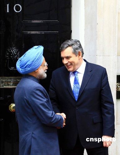 图:英国首相布朗会见印度总理辛格