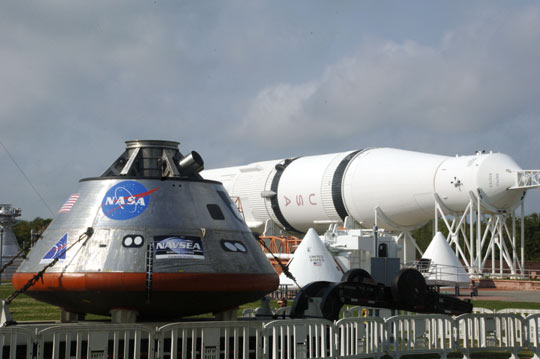 当地时间4月2日,美国国家航空航天局在肯尼迪航天中心展示“猎户座”载人试验飞船。该飞船的部分试验将于下周在佛罗里达州举行。