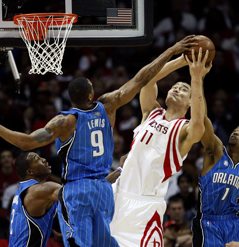 中新网4月8日电 北京时间今日清晨,休斯敦火箭在主场迎战东部劲旅魔术。最终火箭在主场以93-83轻松战胜对手,稳居西部第四。姚明在比赛中拿下20分16个篮板的大两双,两次封盖人称“魔兽”的魔术队当家球星霍华德,在中锋对决中完爆对手。
