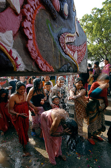 图:尼泊尔印度教信徒集体沐浴庆祝传统节日(4)