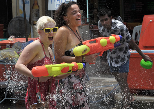 曼谷街头民众相互泼水欢庆泰国新年(2)