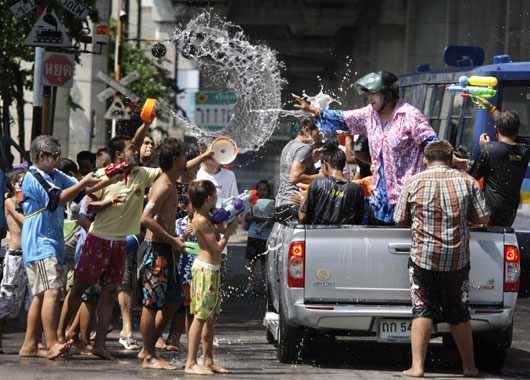 特写:曼谷军民泼水节"水火交融" 旅游业受重创