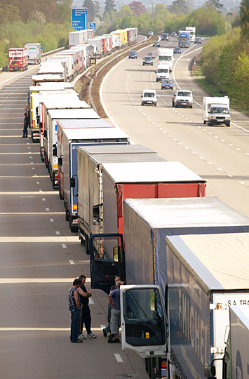 图:法国渔民封锁渡口造成车辆大拥堵(4)