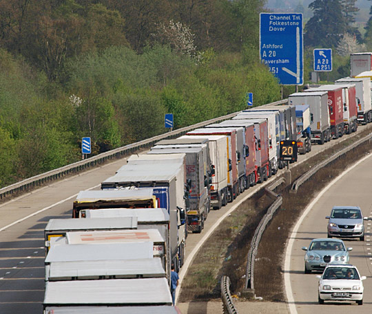 图:法国渔民封锁渡口造成车辆大拥堵(5)