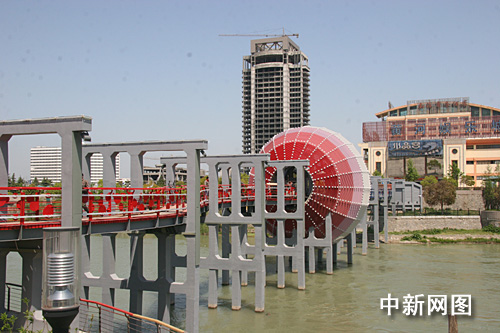 图为中国南北地理分界线工程矗立在古淮河上。中新网记者 蓝玉贵 摄
