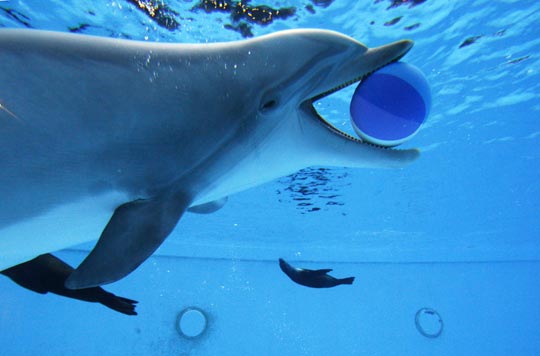 趣图:喜欢在水中玩球的可爱海豚(3)