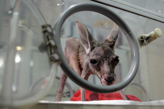 据英国媒体报道,在塞尔维亚的一家护理中心里有一只从妈妈育儿袋里掉落出来的袋鼠宝宝,现在在医护人员的精心照料下,这只可怜的袋鼠得以继续生存。据悉,它的妈妈是因为受到惊吓后,把自己的宝宝掉了出来。