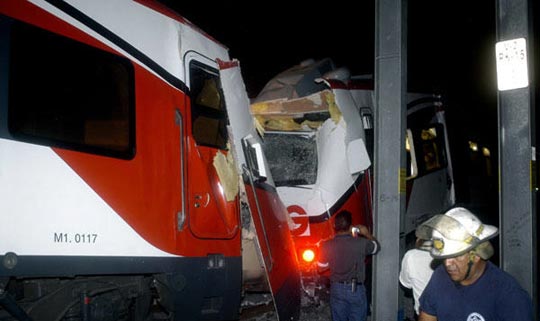 组图:墨西哥发生两列轻轨火车相撞事故(2)