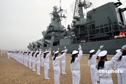俄罗斯“瓦良格”号导弹巡洋舰抵青岛