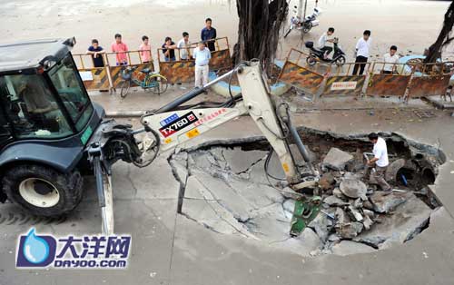 图:广州一处路面十天内连发三次地陷(2)