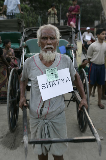 4月19日,印度人力车手比赛在加尔各答举行,大约100名人力车夫参加了比赛。