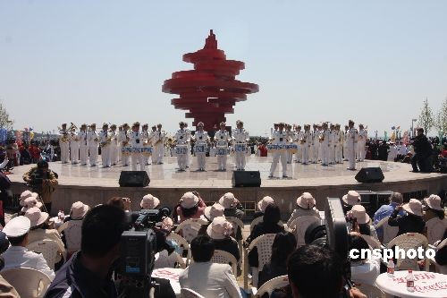中国海军军乐队在青岛庆祝中国海军60周年活动中表演。中新社发 郭国权 摄