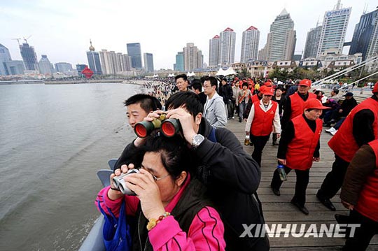 4月23日,海上阅兵在青岛附近黄海海域举行,数以万计的岛城市民与外地游客聚集在五四广场及奥帆中心周边沿海一线,共同观看和分享这一庆典。 李紫恒 摄