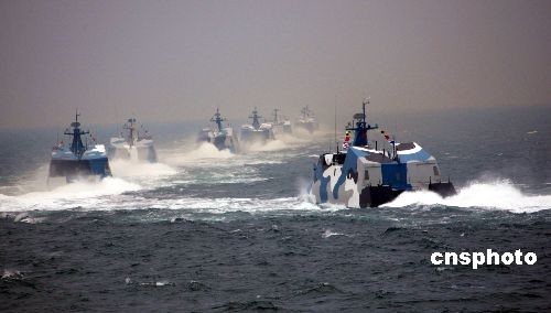 图为中国海军新型导弹快艇编队接受检阅。中新社发 张雷 摄
